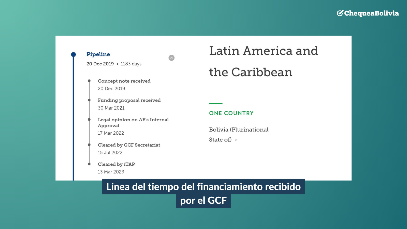 - Durante el gobierno de Arce, Bolivia realizó gestiones ante el GCF y el GEF, instituciones creadas y/o guiadas por la COP para recibir financiamiento climático