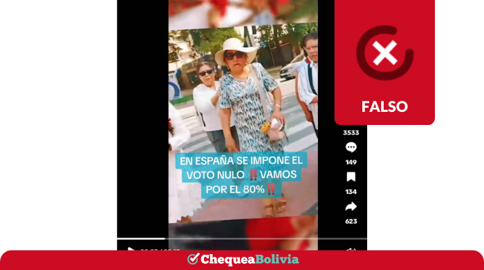 En TikTok circula un video difundido por la cuenta “GuerrerosSamurai” que incluye un texto con la afirmación: “En España se impone el Voto Nulo ¡Vamos por el 80%!”. ChequeaBolivia verificó que este contenido es falso.