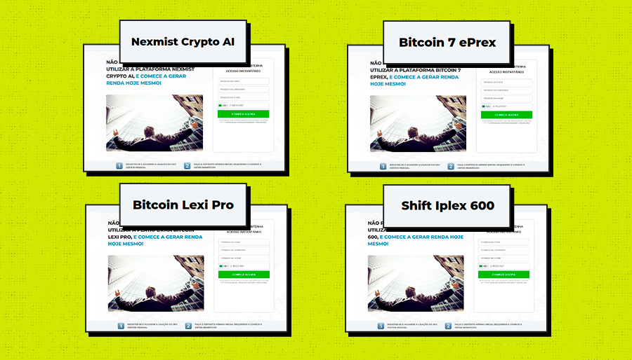 Las páginas fraudulentas siguen un mismo patrón: textos similares e incluso fotos idénticas. Pero los nombres de las supuestas plataformas cambian en cada versión. En las 69 páginas identificadas por Lupa se divulgaron 57 nombres distintos de plataformas de inversión, muchos con palabras clave que evocan eficiencia. En la práctica, las plataformas presentadas como milagrosas funcionan como carnadas que redirigen al usuario hacia páginas de otras empresas.