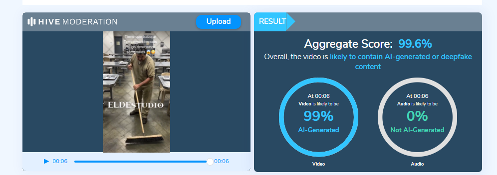 Resultado de la herramienta Hive Moderation.