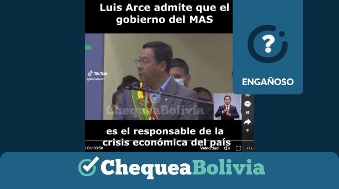 En TikTok circula un video en el que se observa al presidente del Estado, Luis Arce, afirmando que la administración económica del país fue “nefasta” en los últimos 11 años. La declaración fue brindada durante el 178 aniversario de Beni, en 2020, durante el acto oficial de la Asamblea Legislativa Departamental. ChequeaBolivia verificó que se trata de un contenido engañoso.