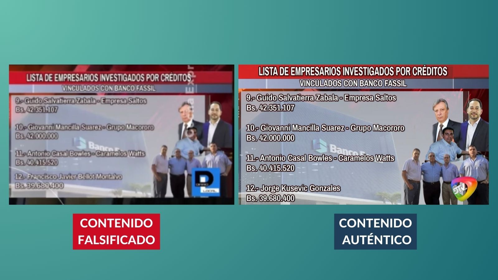 En el video falso se muestra al periodista de Detrás de la Verdad (DTV), Junior Arias, difundiendo una lista de 50 con nombres de empresas y empresarios vinculados al Banco Fassil. En el número 12 de la lista se oye mencionar el nombre de Javier Bellot.