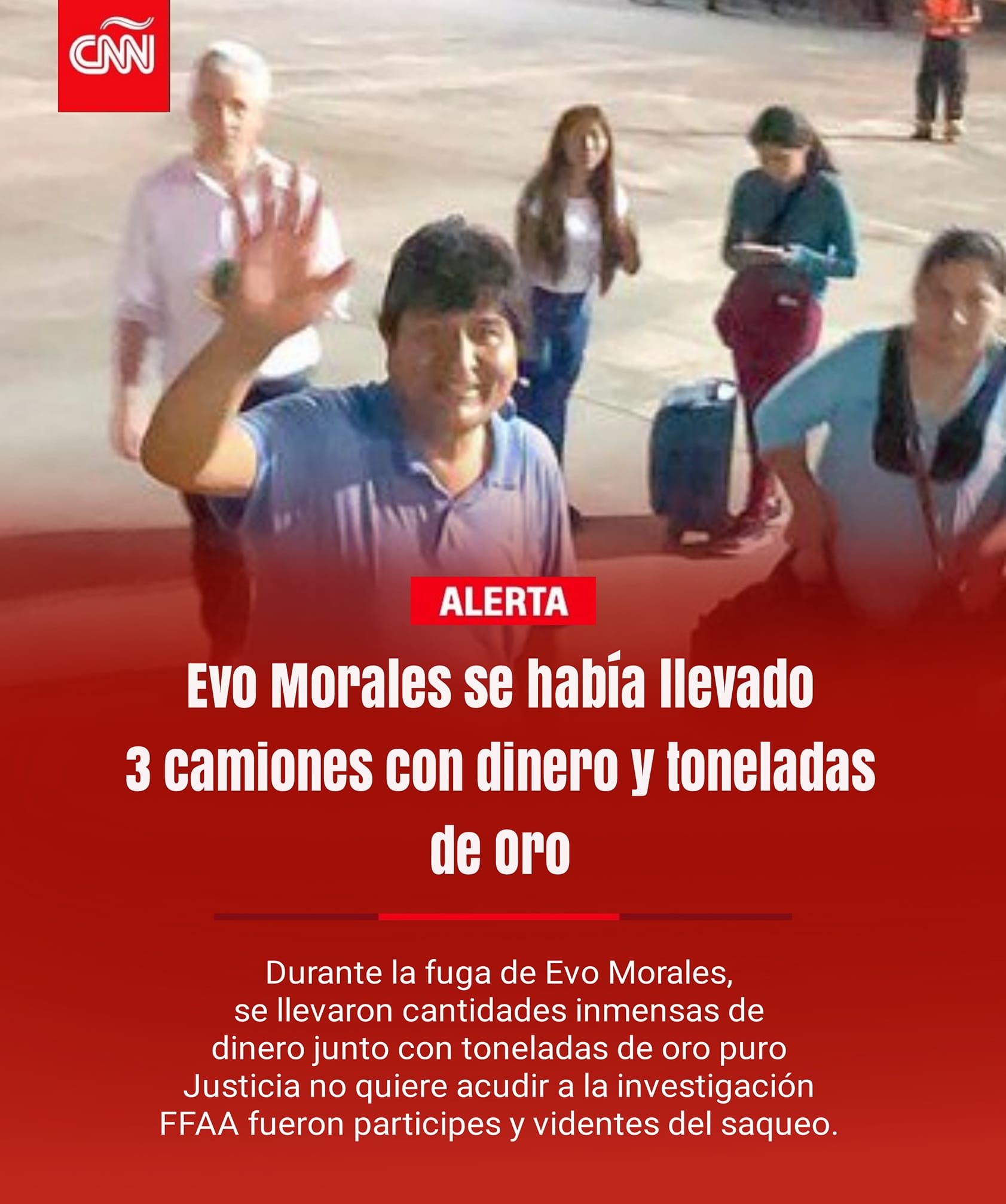 En Facebook circula una imagen con los sellos de CNN en español afirmando que el expresidente y actual líder del Movimiento al Socialismo (MAS), Evo Morales, se habría llevado tres camiones con oro y dinero cuando huyó del país en noviembre de 2019. ChequeaBolivia advierte que se trata de información falsa.