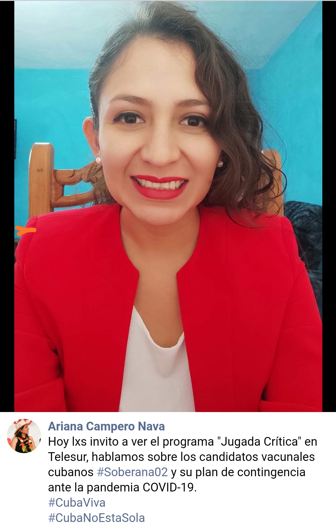 ChequeaBolivia, además, mediante una búsqueda en reversa de la fotografía utilizada en la publicación, evidenció que fue extractada de una publicación de Facebook que realizó Campero para anunciar una entrevista que le realizarían en Telesur para hablar de las medidas contra el coronavirus y las vacunas contra el coronavirus candidatas en Cuba. En la misma Campero no mencionó a Morales ni las acusaciones contra él.