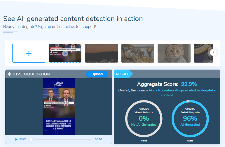 La herramienta Hive Moderation, útil para estimar cuán probable es que un contenido haya sido generado con IA, señala que el audio fue probablemente generado artificialmente con un 96 por ciento.