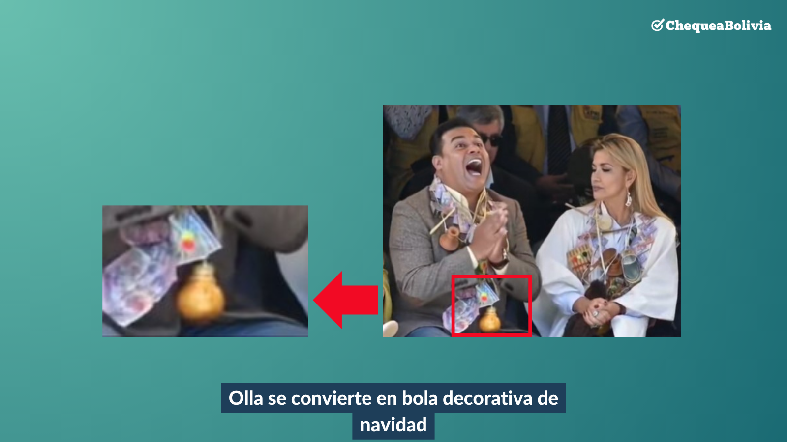 Cómo por ejemplo, que una parte del cabello de la expresidenta Añez quedó suspendida en el aire mientras se movía, o que una de las pequeñas ollas de barro que forman parte del collar tradicional que utiliza Revilla, se convierte en una bola decorativa de navidad al final del video.
