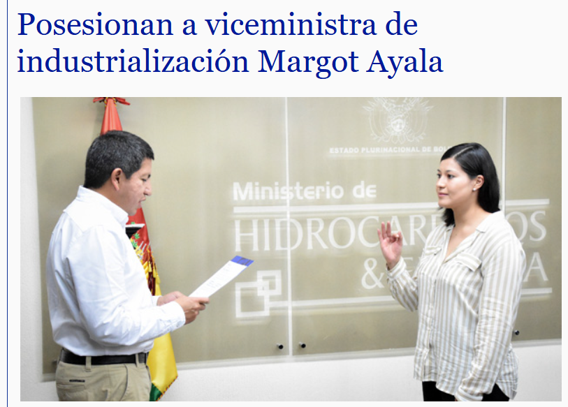 Margot Ayala fue viceministra de Industrialización, Comercialización, Transporte y Almacenaje de Hidrocarburos desde 2017 hasta 2018.