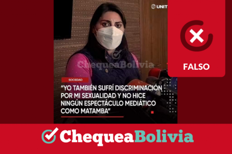 En WhatsApp se comparte la captura de una supuesta nota de Unitel con la siguiente frase atribuida a la senadora, Andrea Barrientos: “Yo también sufrí discriminación por mi sexualidad y no hice ningún espectáculo mediático como Matamba”. ChequeaBolivia verificó que se trata de información falsa.