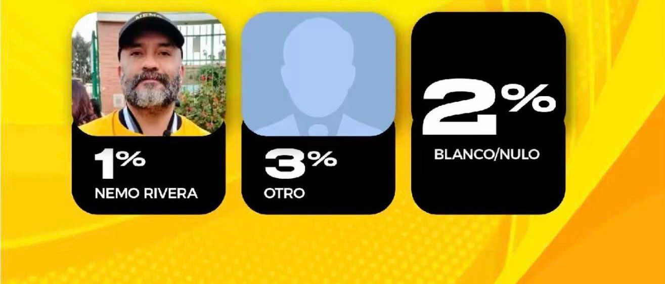 Asimismo, la imagen presenta un error en el apellido del candidato Nemo Rivero, que figura como “Rivera”, una equivocación poco probable en un estudio oficial.