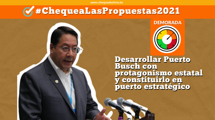 El candidato del Movimiento Al Socialismo y actual presidente del Estado, Luis Arce, se comprometió a desarrollar Puerto Busch con participación estatal. La propuesta figura en el Programa de Gobierno presentado durante la campaña de 2020, ante el Tribunal Supremo Electoral (TSE). ChequeaBolivia hizo seguimiento a esta propuesta y constató que está demorada.