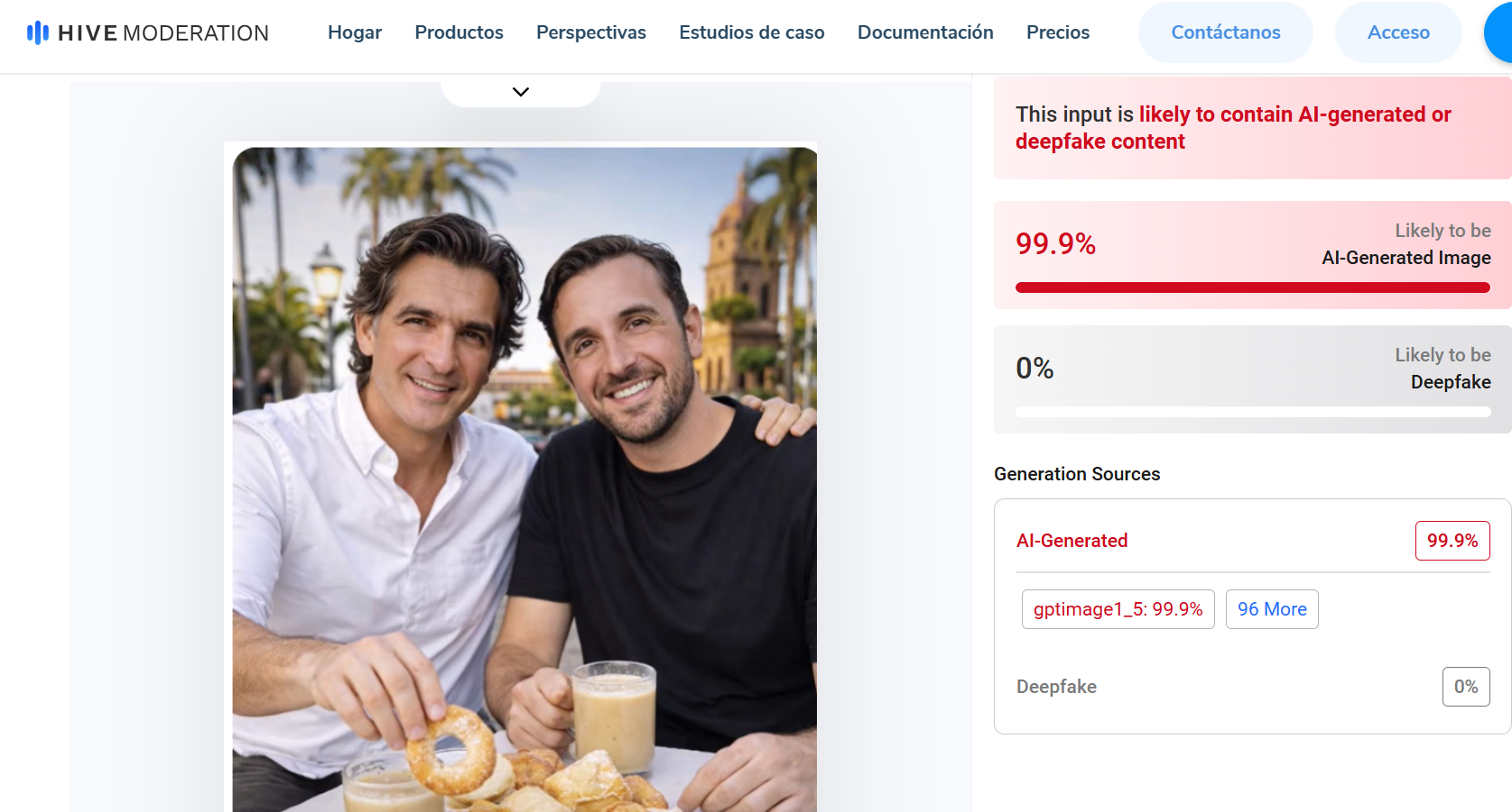 Revisión la imagen con la herramienta Hive Moderation