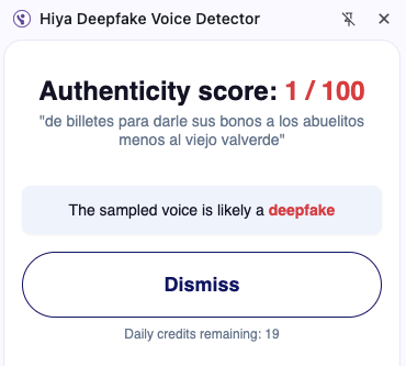 Captura del resultado con la herramienta Hiya Deepfake Voice Detector.