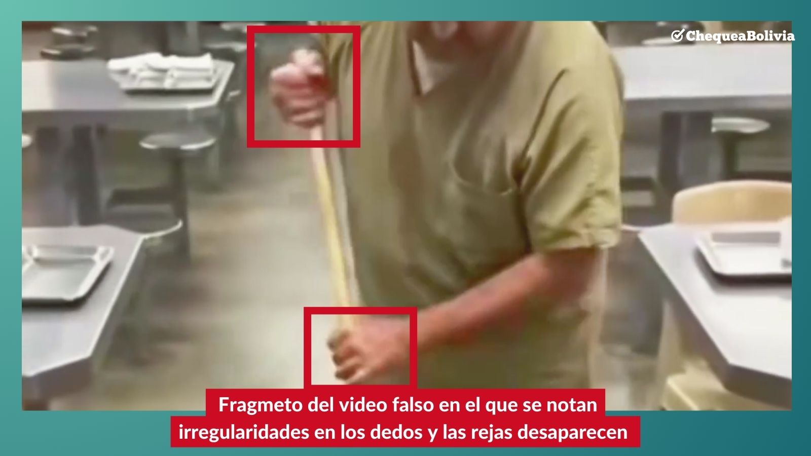 El video presenta varias señales de haber sido generado artificialmente: en algunos momentos las rejas parecen desaparecer y se observan movimientos extraños en los dedos.